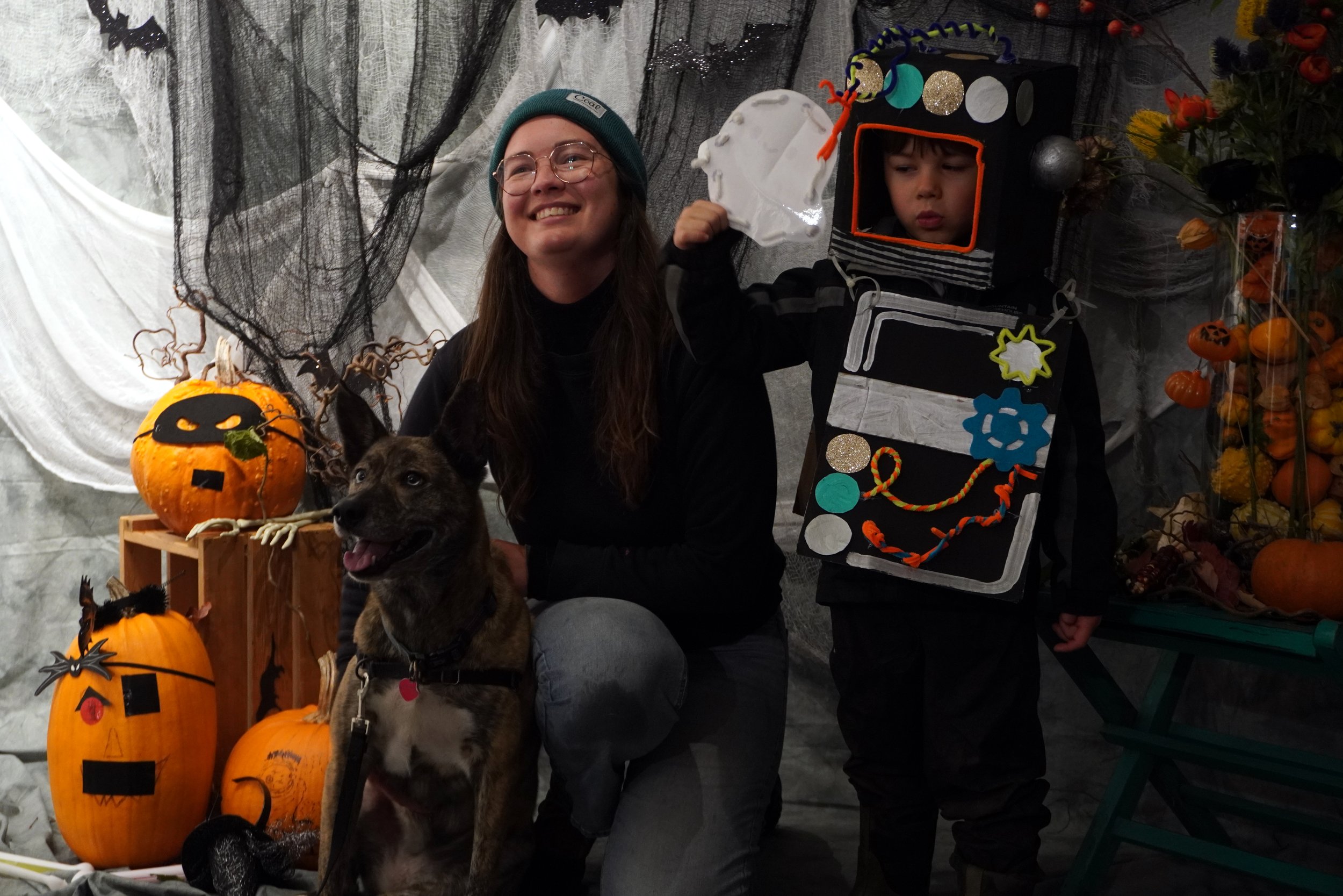 Maisy, shown with her owner Zachary, was the Winner in our Creepiest Costume Competition